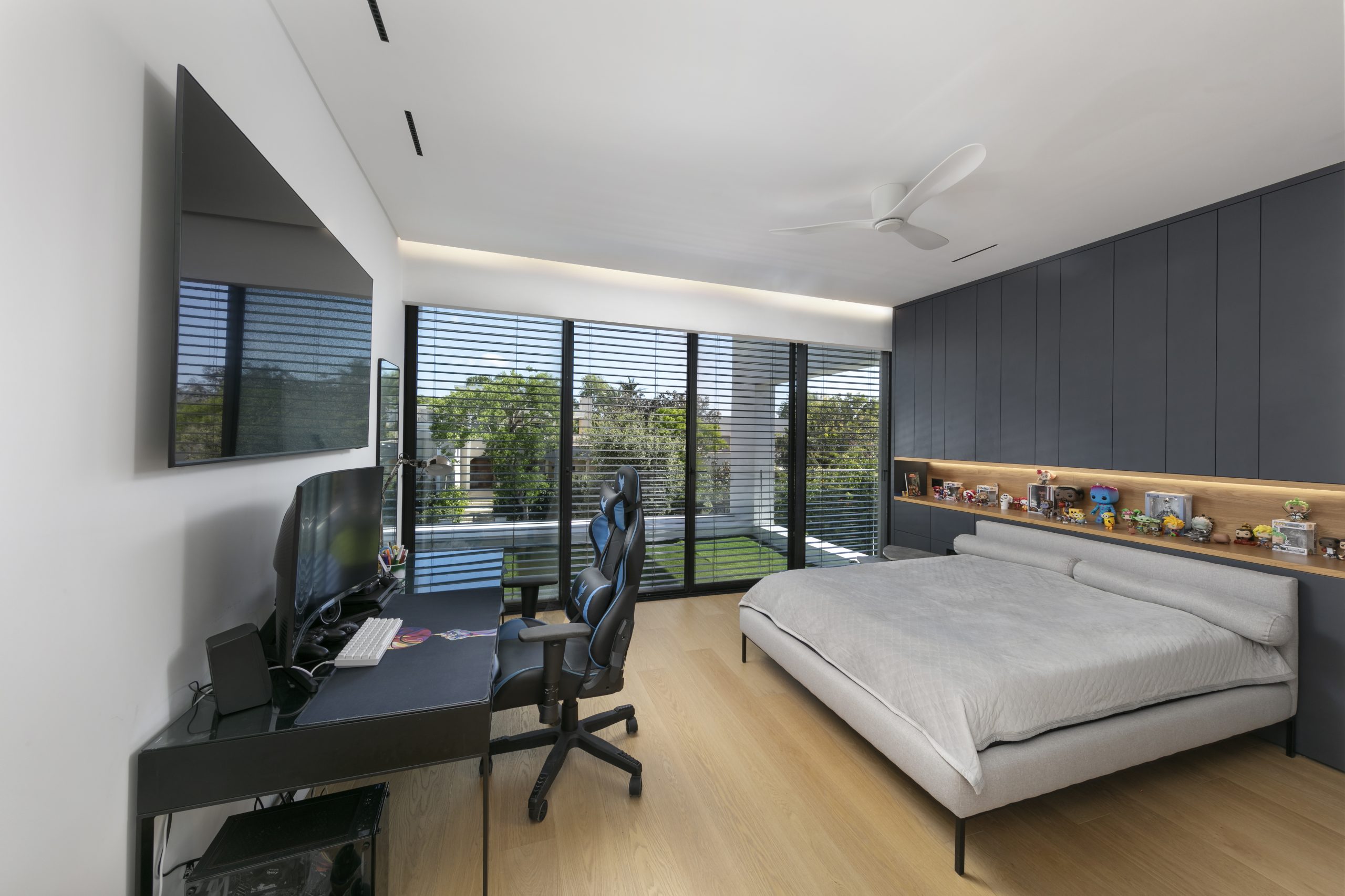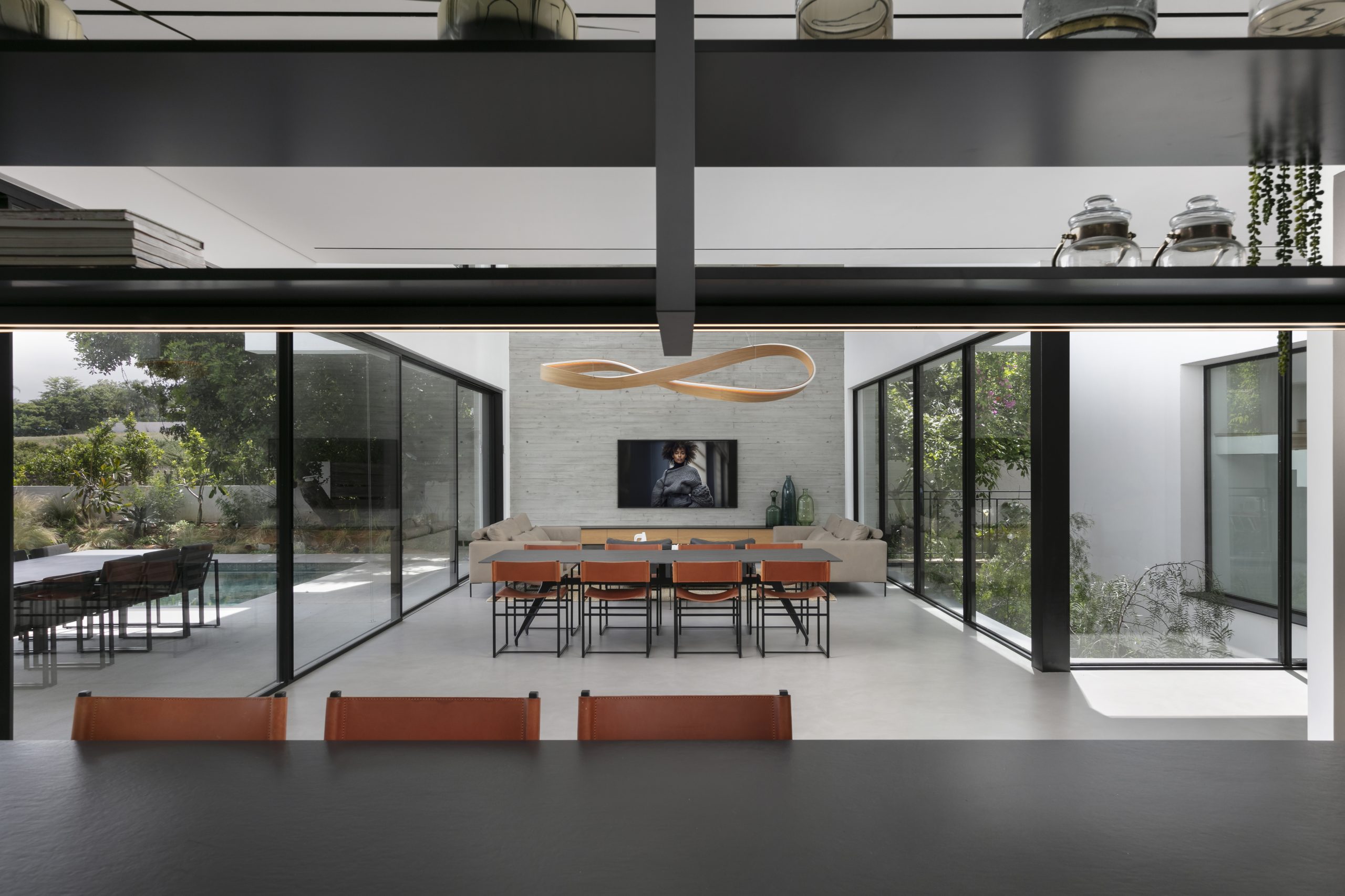 מערכת מינימל סופר טרמי MOTION520 כולל מסילה מרוצפת בסלון , יחד עם מערכות קליל באהאוס 5600 7600 בשטחים האחרים.